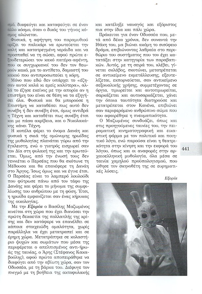 Δεν είναι η πρώτη φορά που ο σκηνοθέτης Βασίλης Μαζωμένος καταπιάνεται με την κρίση που μαστίζει την Ελλάδα τα τελευταία δέκα σχεδόν χρόνια. Πιο πρόσφατο παράδειγμα η προηγούμενη, αλληγορική ταινία του «Γραμμές», όπου μέσα από διάφορες ιστορίες παρακολουθούσαμε τον αντίκτυπο της κρίσης στα διάφορα στρώματα του λαού. Στη νέα του ταινία, «Εξορία», ο Μαζωμένος παίρνει για ήρωα έναν απλό Έλληνα, που, στα πρώτα πλάνα της ταινίας, τον βλέπουμε να προσπαθεί με μια βάρκα να “δραπετεύσει” από την Ελλάδα της κρίσης. Έναν Έλληνα, που ο ίδιος ο Μαζωμένος θεωρεί σύγχρονο Οδυσσέα, που ξεκινά με το μικροσκοπικό σκάφος για ένα ταξίδι προς τα πού; Για ποια Ιθάκη;Η θάλασσα στην τέχνη εκφράζει συνήθως την ελευθερία μόνο που ακόμη και σ` αυτήν, ο ανώνυμος ήρωάς του Μαζωμένου (δεν έχει ούτε όνομα, ούτε χαρτιά, είναι απλά ο “Κανένας” όπως μαθαίνουμε στη συνέχεια) μοιάζει παγιδευμένος. Θα συρθεί μισόγυμνος και μισοπεθαμένος πίσω στην Ελλάδα όπου θα μπλέξει σε διάφορες περιπέτειες. “Κανείς δεν μένει σ` αυτό τον κωλότοπο”, είναι το σχόλιο ενός μέλους από το σώμα της ακτοφυλακής που τον περισυλλέγουν.Στο πρώτο επεισόδιο, όταν, ντυμένος με μια κελεμπία που βρίσκει σ` ένα μισοερειπωμένο σπίτι κοντά στη θάλασσα, διεισδύει σ` ένα μουσουλμανικό μίνι-μάρκετ, και στην προσπάθειά του να κλέψει κάτι για να φάει, συλλαμβάνεται από την αστυνομία, ο Μαζωμένος χρησιμοποιεί ένα απλό στιλ, με ωραίες, διανθισμένες με ποίηση, εικόνες. Αντίθετα, στο επόμενο, με τους δυο αστυνομικούς που τον ανακρίνουν (ο ένας σε ανάπηρο καροτσάκι και ο άλλος με σορτσάκι και ρακέτα του τένις) και τον αναγκάζουν να γδυθεί και να ακούει τις διάφορες βρισιές τους ενάντια στους μουσουλμάνους (“πώς τόλμησες να κλέψεις από αυτά τα ζώα;” τον ρωτάνε οργισμένοι), στο νου έρχεται τόσο το παράλογο χιούμορ των θεατρικών έργων του Χάρολντ Πίντερ όσο κι εκείνο στις ταινίες του Ρόι Άντερσον.Το επεισόδιο διακόπτεται με την εμφάνιση της Μις Άντζελα, μιας κομψής Γερμανίδας με όνομά που θυμίζει εκείνο της Μέρκελ, που ως από μηχανής θεός (μια πονηρή Καλυψώ;) τον χρησιμοποιεί για να ικανοποιεί τις σεξουαλικές τις επιθυμίες. Ο Κύκλωπας έρχεται στο νου όταν, με το κολιέ που αποσπά από την Άντζελα, ο Κανένας επισκέπτεται έναν ενεχυροδανειστή, που θέλει να τον κάνει υπηρέτη του και που ο ήρωάς μας (αντι-ήρωας στην πραγματικότητα), για να απελευθερωθεί, αναγκάζεται τελικά να τον σκοτώσει. Ενώ, σ` ένα θέατρο, όπου κυριαρχεί ένα φελινικό ντεκόρ, αιχμάλωτος τώρα των σειρήνων, ο Κανένας, που έχει πάρει τη θέση του ενεχυροδανειστή, γίνεται ο αποκλειστικός θεατής μιας αναπαράστασης ευφάνταστων ερωτικών σκηνών, πριν αποφασίσει ποια θα επιλέξει. Η τιμωρία του, όταν προσπαθεί να δραπετεύσει, είναι να αντιμετωπίσει για αντίπαλο, σ` ένα αγώνα πάλης μέχρι θανάτου, τον άντρα με τον οποίο σχεδίαζε να δραπετεύσει.Εκείνο που επιδιώκει, και τελικά καταφέρνει, ο Μαζωμένος είναι, μέσα από τα επεισόδια αυτά, να παρουσιάσει τους διάφορους τρόπους εκμετάλλευσης, ταπείνωσης και εξευτελισμού του νεοέλληνα, εξόριστου, όπως υποβάλλει και ο τίτλος της ταινίας, στην ίδια του τη χώρα, την Ελλάδα της κρίσης. Εξόριστου σε μια χώρα όπου τα ελληνικά έχουν καταντήσει μια δεύτερη γλώσσα, με τους άλλους γύρω του (εκτός από μερικές εξαιρέσεις) να μιλάνε αγγλικά. Ενός εξόριστου μπλεγμένου σε μια σειρά επεισόδια που μοιάζουν με εφιάλτη, που πολύ έξυπνα ο σκηνοθέ